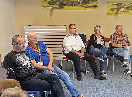Wir begannen am Samstag mit der Abarbeitung der Fragen. Hier kamen sehr interessante Details zum Vorschein. Ein Freundeskreis erstellt jährlich für seine Mitglieder einen Kalender mit Sprüchen zum Nachdenken und den wichtigen Terminen. Auch wird über die Erstellung von Mitgliedsausweisen und deren Form bzw. Inhalt nachgedacht. Eine andere Fragestellung betraf die telefonische oder persönliche Kontaktaufnahme bei mehrfachen Fehlen in der Gruppe. Hier wurde auch kurz über das sogenannte Helfersyndrom gesprochen. Der Vormittag verging wie im Fluge. | ![]() |