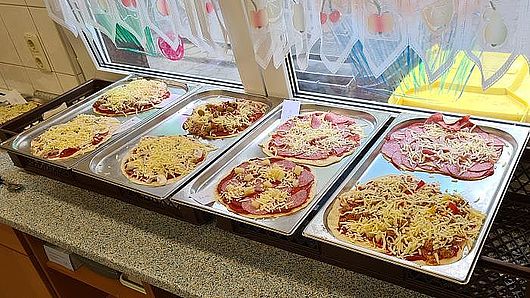 Zutaten schneiden, Teig ausrollen und belegen der Pizza waren jetzt Programm. Auch Gurken und Tomaten für einen Salat schnitten die Kinder noch zurecht. Und auch Waffeln wurden noch gebacken und direkt verzehrt.