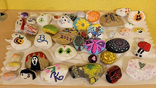 Nach dem Abendbrot ging es dann an das Steine bemalen. Aus ganz gewöhnlichen Steinen wurden wunderschöne Kunstgebilde.