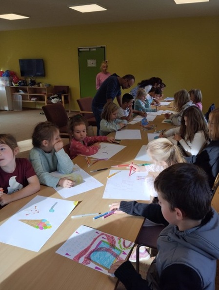 Es ist immer wieder erstaunlich, welches Wissen selbst bei den Jüngsten schon da ist. Danach malten alle ein Bild. Darauf sollte zu sehen sein, welche Aktivität sie sich in der Familie wünschen. Das war sehr interessant. Geschwisterkinder wünschten sich mal allein was mit den Eltern zu machen, es gab einen Wunsch einfach mal in Ruhe zuhause zu sein und natürlich Baden, Eisessen usw.. Ein Bild eines Kindes unter 6 war dabei, welches die vorhergezeigten Suchtmittel mit darstellten, welche durchgestrichen waren. Wir sprachen noch über die Bilder.