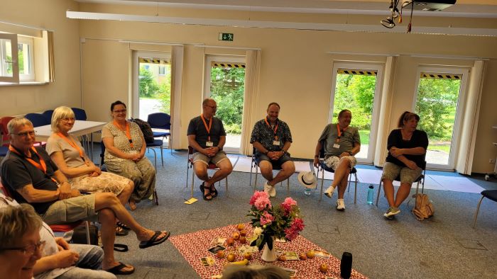 Vom 09 .06. bis 11.06.23 fand im Kiez- Querxenland Seifhennersdorf das erste Betroffenenseminar des Jahres 2023 statt. Am Freitagabend reisten 14 Teilnehmer und die Referentin Jacqueline Bramborg von der Selbsthilfekontaktstelle Bautzen, in großer Freude auf ein tolles Wochenende, an. Matthias Sanftleben und Jacqueline Klieme übernahmen seitens des Landesverbandes die Organisation und Betreuung des Wochenendes. Wir waren sehr erfreut darüber, dass Jacqueline Bramborg es möglich machen konnte, das ganze Wochenende teilzunehmen. So bestand die Möglichkeit für weiterführende und individuelle Gespräche. | ![]() |