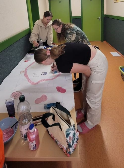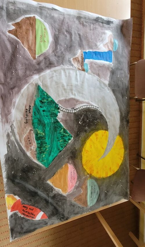 Nach dem Mittagessen wurden die Teilnehmer in 2 Gruppen aufgeteilt. Aufgabe war es jetzt eine Insel zu malen, auf welcher alle 5 Säulen integriert sind. Beide Gruppen haben das super umgesetzt. Es entstanden 2 tolle große Bilder. Eins davon war ein Planet geworden. Die Jugendlichen hatte dazu sogar eine Geschichte geschrieben. Einfach klasse und vor allem hatten sie erkannt, das Gesundheit, Soziales Wohlbefinden, finanzielle Sicherheit, Sinnerfüllung/Wertschätzung und das ausleben können der eignen Werte, die Grundlage für die Balance des Lebens sind. In der Kaffeepause wurden Waffeln gebacken und es wurde sich angeregt unterhalten.