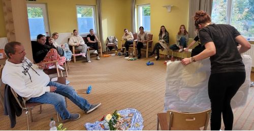 Vom 11.10. bis 13.10. 24 fand im Kiez Querxenland in Seifhennersdorf das Jugendseminar statt. Es freuten sich 12 Jugendliche im Alter von 14 bis 30 Jahren auf ein interessantes Wochenende. Alle sind mindestens an einem Schnittpunkt mit dem Thema Sucht sehr vertraut. Teilweise stammen sie aus suchtbelasteten Familien ober haben selbst Suchterfahrungen. Das Thema des Seminars lautete: „Selbstachtsamkeit Selbstfürsorge“. Es wurde von Ralph Müller und Matthias Sanftleben begleitet. Für den fachlichen Input war Jacqueline Klieme als Referentin eingeladen.