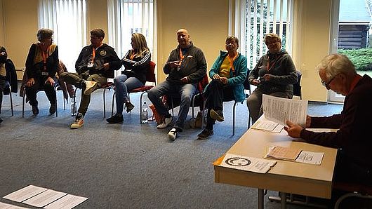 ![]() | Das sehr positive vorweg. Es waren viele neue Teilnehmer anwesend. Aus diesem Grund fand unsere aller Vorstellung etwas umfänglicher aus, was sehr gut bei allen ankam. Dies war schon mal das 1.Feedback des Wochenendes. Nach der Vorstellungsrunde haben wir den Begriff Feedback definiert und erläutert und schon einige Fragestellungen für die darauffolgenden Tage notiert. Und es gab eine Premiere in Punkto Seminarablauf, Klaus Linke aus dem Freundeskreis Torgau hatte sich im Vorfeld bereit erklärt, über dieses Thema zu referieren. |