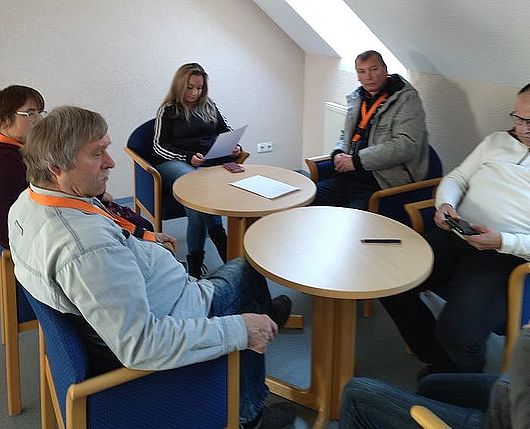 Nach der Mittagpause teilten wir unsere Teilnehmer in 4 Kleingruppen auf, worauf diese sich in verschiedene Räumlichkeiten verteilten und über das Seminarthema fachsimpelten. Natürlich besprachen sie auch noch andere Themen, wie z.Bsp. Zusammenarbeit/-Halt in den Gruppen, Gruppenarbeit , Freizeitgestaltung in der Gruppe. Der Nachmittag verging wie im Fluge. Wir verabschiedeten alle zum Abendbrot mit dem Hinweis sich 20.00 Uhr im Gemeinschaftsraum wieder einzufinden. Den Abend gestalteten wir mit einem Was/Wer bin ich Spiel, im Anschluss konnte wer wollte ein paar Episoden aus seiner nassen Vergangenheit erzählen. Es war mitunter schon lustig was mancher so angestellt hat, es war kurzweilig zuzuhören. Nachdem langsam die Luft raus war, sind einige aufs Zimmer gegangen und ein paar andere trafen sich zum Kartenspiel.