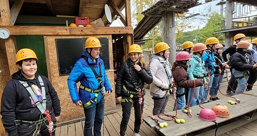 ![]() | Am Dienstag freuten sich die Kinder auf den Kletterpark in Bautzen. Auch die Erwachsenen sind mitgeklettert. Alle waren sehr mutig und wollten hoch hinaus. Etwas ängstlich beginnend wurden die Kinder ermutigt sich etwas zuzutrauen. Für Kinder aus suchtbelasteten Familien ist es besonders wichtig Selbstvertrauen zu entwickeln und zu stärken. Alle haben das super gemeistert. |