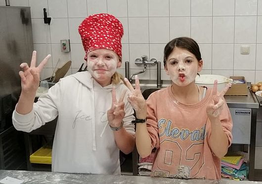 Zutaten schneiden, Teig ausrollen und belegen der Pizza waren jetzt Programm. Auch Gurken und Tomaten für einen Salat schnitten die Kinder noch zurecht. Und auch Waffeln wurden noch gebacken und direkt verzehrt.