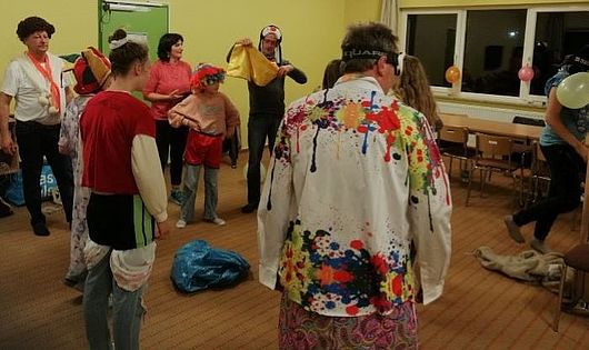 Am Abend fanden sich alle noch zu einem Spieleabend zusammen. Es wurde sich verkleidet, Socken um die Wette auf gehangen und vieles mehr. Alle hatten dabei einen riesen Spaß. Nicht nur die Kinder waren unbeschwert und fröhlich.